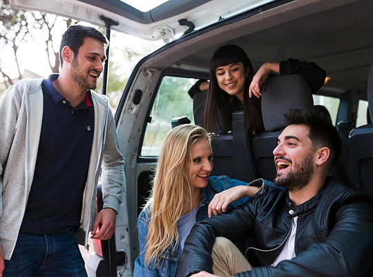 Si son varios, tenemos sitio para todos. Microbuses con chofer para que podáis ir juntos al evento, al aeropuerto o donde haga falta. No hay que dividirse en coches ni preocuparse por aparcar.